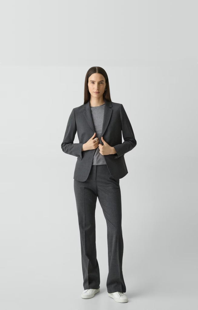 El Good Wool Blazer de Theory es una pieza que refleja cómo la sastrería ejecutiva femenina ha evolucionado hacia una expresión más sobria, funcional y consciente del ritmo real de trabajo. Su diseño parte de una estética minimalista que prioriza líneas limpias y proporciones equilibradas, proyectando autoridad sin necesidad de rigidez ni exceso. Confeccionado en lana de alta calidad, este blazer permite regulación térmica, durabilidad y una caída impecable que refuerza la presencia profesional.