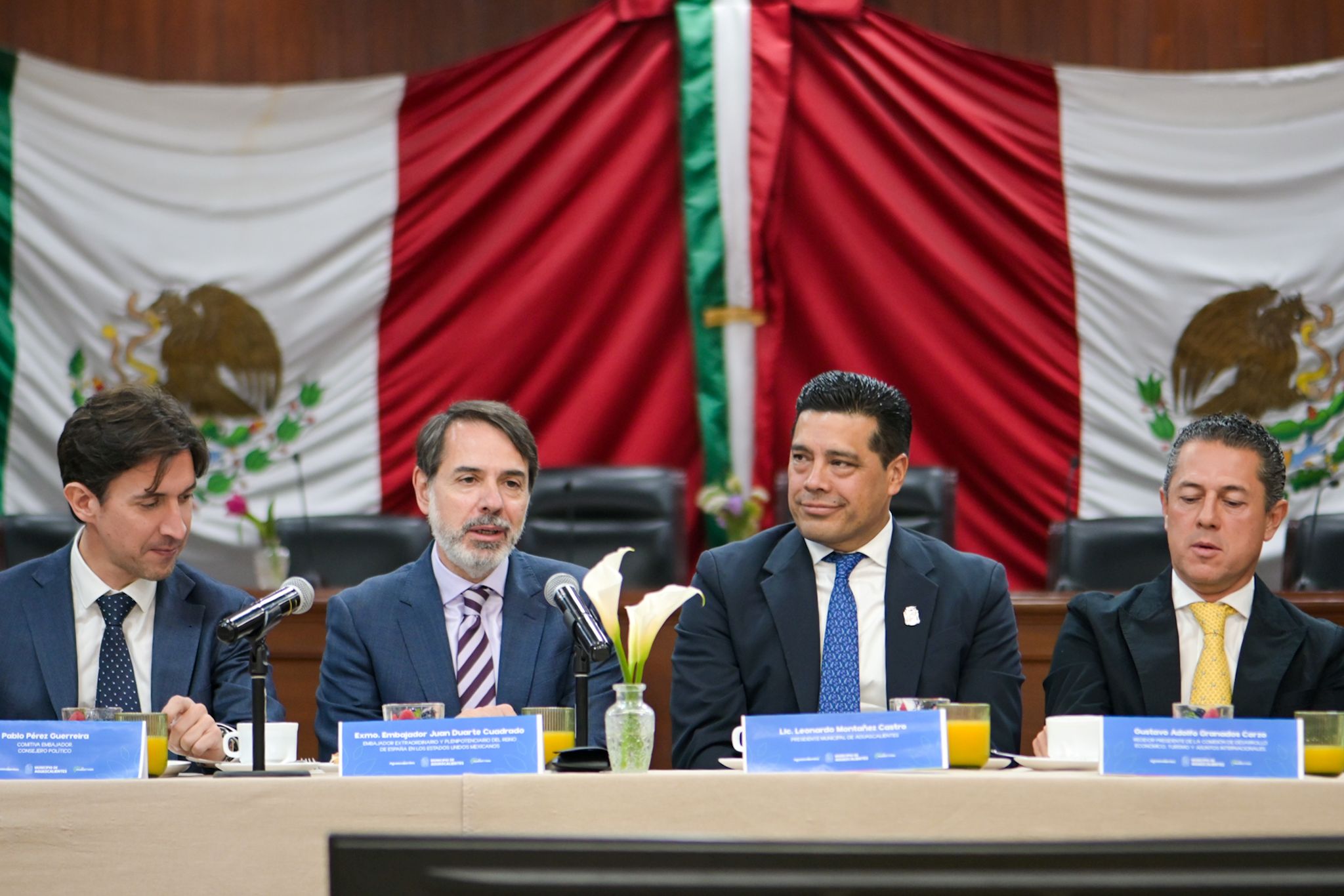 Se contó con la participación en este encuentro de talla internacional, efectuado en el Salón Cabildo de Palacio Municipal de Aguascalientes, de Pablo Pérez Guerreira, Guadalupe Díaz González, Yolanda Rodríguez Gómez y Aloña Aramburu Iturbe, Consejeros de la Embajada de España; Daniel Alejandro Muñoz Romo, Cónsul honorario de España en el Estado de Aguascalientes; Juan Carlos Soledad Pérez, presidente de COPARMEX en Aguascalientes; Roberto Díaz Ruíz, presidente del Consejo Estatal Empresarial de Aguascalientes; Rodolfo Esaú Garza de Vega, secretario de Desarrollo Económico, Ciencia y Tecnología del Gobierno del Estado; Luis Enrique García López, secretario del H. Ayuntamiento y director general de Gobierno, síndicos y regidores del Ayuntamiento de Aguascalientes e integrantes del gabinete municipal.
