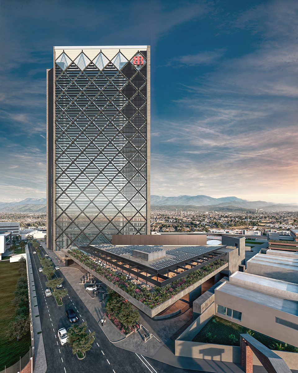 Diseñada por el despacho mexicano LBR&A, encabezado por el arquitecto Benjamín Romano, la torre combina ingeniería avanzada, eficiencia operativa y altos estándares de sustentabilidad en un edificio que aspira a convertirse en un referente arquitectónico de la región.