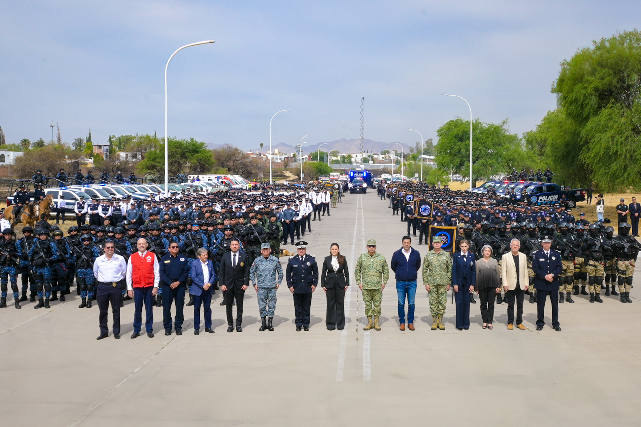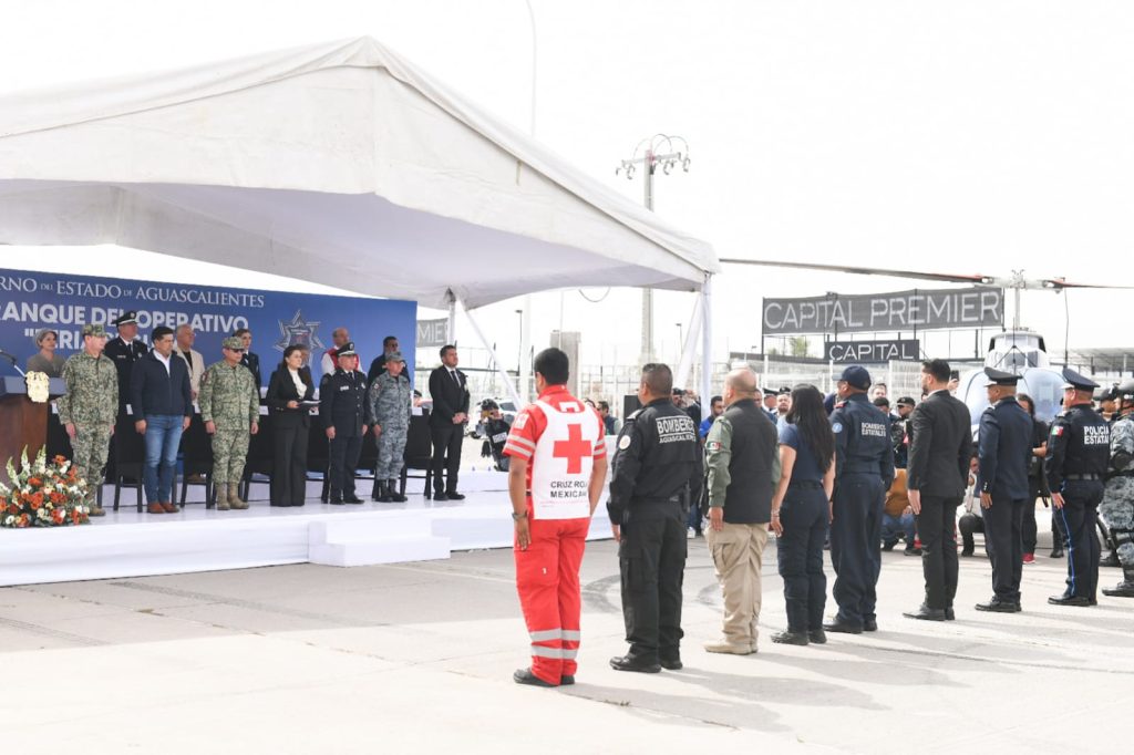 Durante el arranque del operativo también estuvieron presentes el comandante de la 5a. Región Militar, Miguel Ángel Hernández Martínez; el presidente municipal de Aguascalientes, Leonardo Montañez Castro; el comandante de la 14/a. Zona Militar, José Francisco Moreno Barrera; el coordinador de la Guardia Nacional en Aguascalientes, Homero Edmundo Blanco Lozada; el fiscal general del Estado, Manuel Alonso García; la directora general del C5i, Michelle Olmos Álvarez; el secretario de Seguridad Pública del Municipio de Aguascalientes, Gonzalo Pérez Zúñiga; el secretario de Salud del Estado, Rubén Galaviz Tristán; el presidente del Patronato de la Feria Nacional de San Marcos, José Ángel González Serna; el comisionado estatal de la Cruz Roja en Aguascalientes, Jaime del Conde Ugarte; el coordinador estatal de Protección Civil, Jesús Eduardo Muñoz de León; el coordinador de Protección Civil del Municipio de Aguascalientes, José Gabino Vázquez Vega; la titular de la Mesa Ciudadana de Seguridad y Justicia, Karla Martorell Moya.