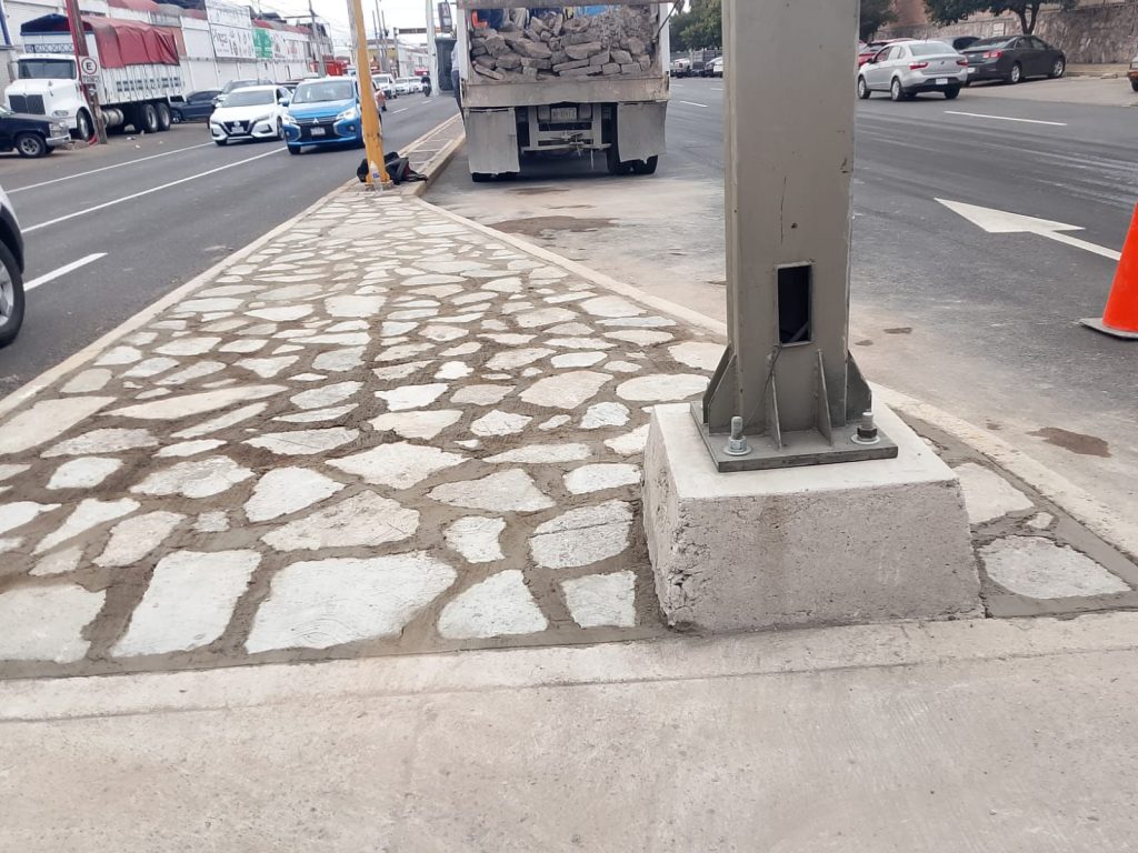 De igual manera, se colocaron 120 metros cuadrados de zampeado en el camellón frente al Centro Comercial Agropecuario.