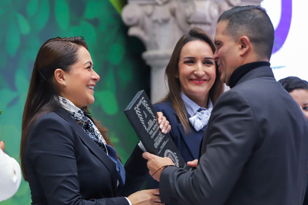 La gobernadora de Aguascalientes, Tere Jiménez, entregó el Premio Gigantes a 15 instituciones educativas que impulsan acciones a favor del cuidado del medio ambiente y que forman generaciones comprometidas con un estado más sustentable.